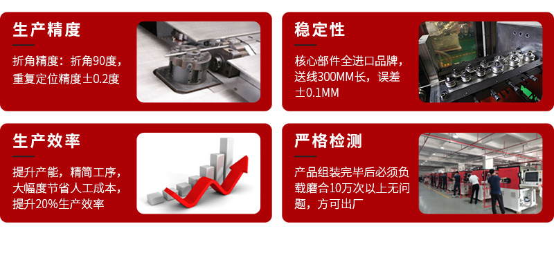 產品特點:生產穩定性好,折角轉角不傷漆變形;生產精度高,誤差小于0.01mm;日本德國進口配件,生產效率提高20%;電腦控制系統,設備操作更簡單。